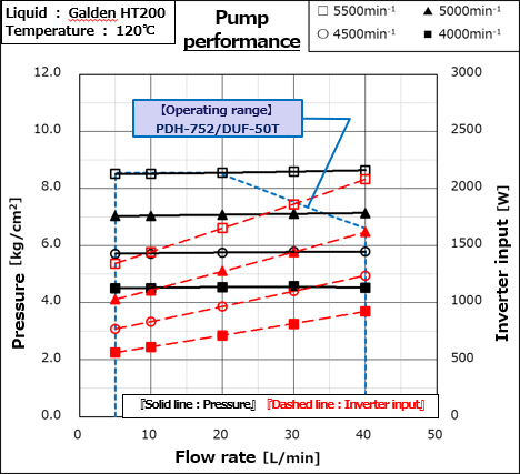 Performance data for PDH-752 measured with Galden HT200 at 120 °C under 200 V and 400 V operation.