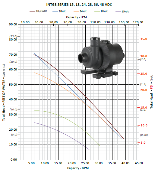 | INTG8-484 | 36–60 VDC | PWM / 0–5V | 4 (+, –, Ctrl, Tach) | 146 (38 GPM) | 22,9 / 32,5 PSI | 1,25 MHB | EPDM |